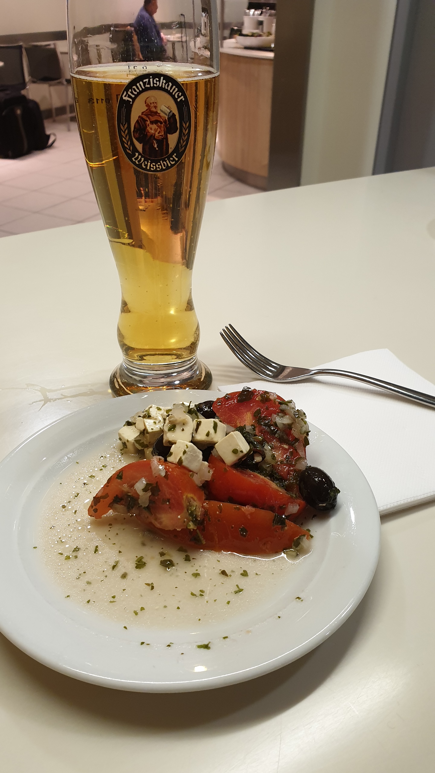 The lounge was extremely busy when I arrived, so much so that I was lucky to get a seat with a table allowing me to get on with some content writing. On offer was a fairly wide range of cold food ranging from a very nice feta salad to some just as nice marble cake (via the abomination that is a pretzel cookie – why would you do that to a cookie!). There was also a hot soup on offer, the standard mix of hot and cold drinks, as well as one of the local Beers on tap. Unfortunately, I had to drive when I arrived back at Stansted and so was limited to a single glass of beer.