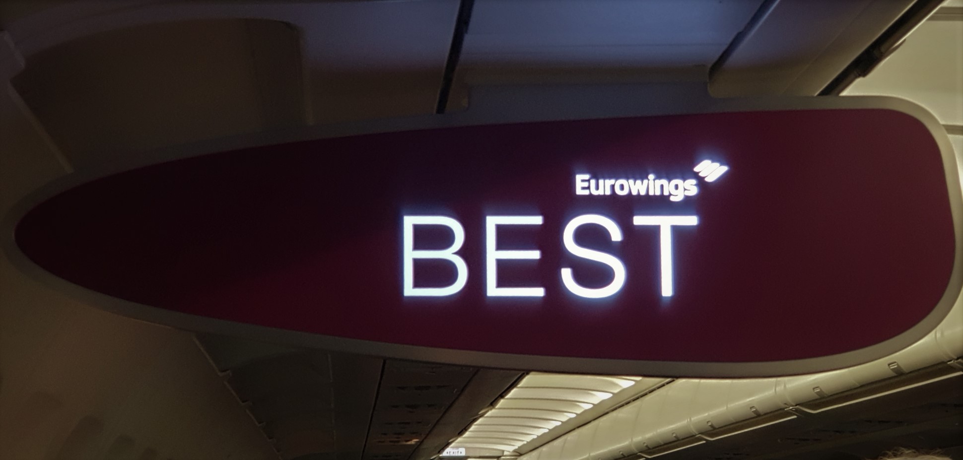 My flight was boarding at gate B50 which required a 10-minute walk back towards security and so I left the lounge with plenty of time. Boarding started approximately 25 minutes prior to departure, and it turned out that I was one of only two Business Class passengers on the flight. Whilst Eurowings allows a few minutes between boarding the ‘priority’ passengers and everyone else, there were a lot of people with fully flexible fares on this flight which comes with the benefit of priority boarding. Due to this there was a lot of people in the priority lane, although I luckily manager to get to the front and so was first on-board and able to store my belongings and get comfortable in my seat whilst everyone else was boarding.