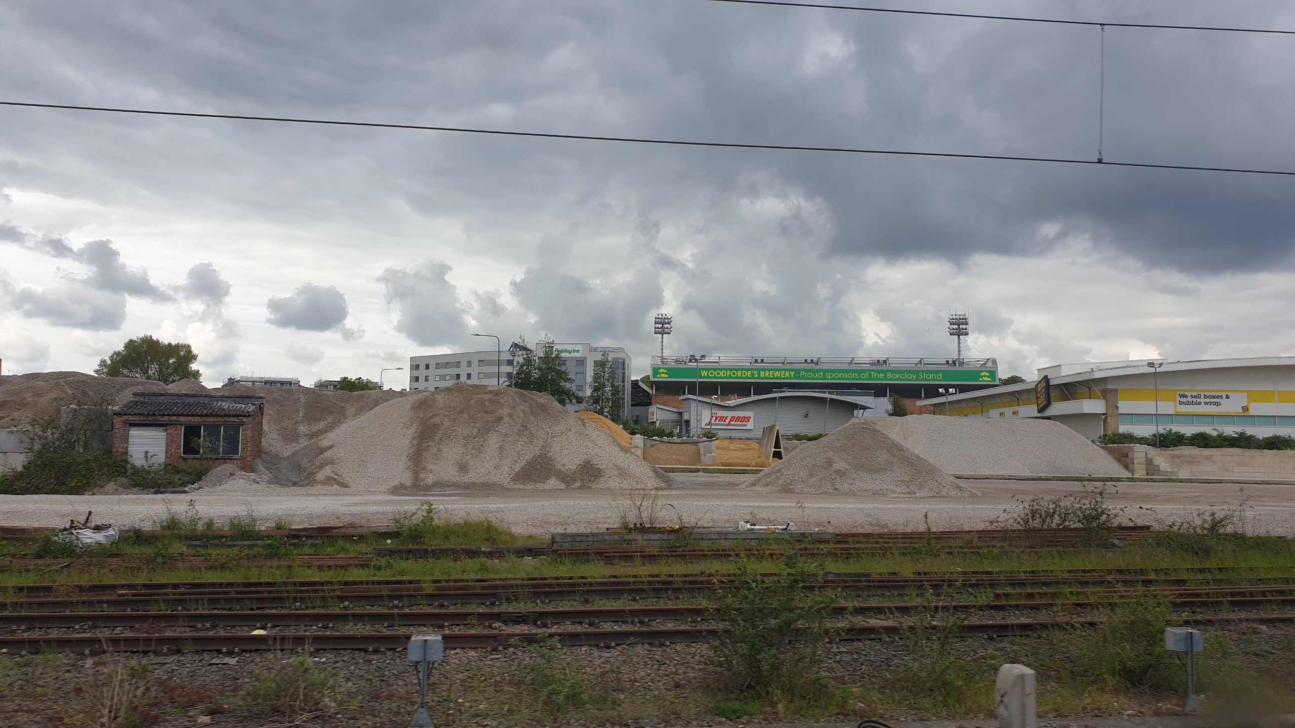 As the railway curves left on the approach to Norwich station, the Carrow Road home of Norwich City Football Club can be seen on the left. Recently promoted to the Premier League, Norwich has played at Carrow Road since 1935 when the original ground was constructed in just 82 days. Pulling into Norwich’s platform 3, we arrived on time just over 90 minutes since departing Peterborough.
