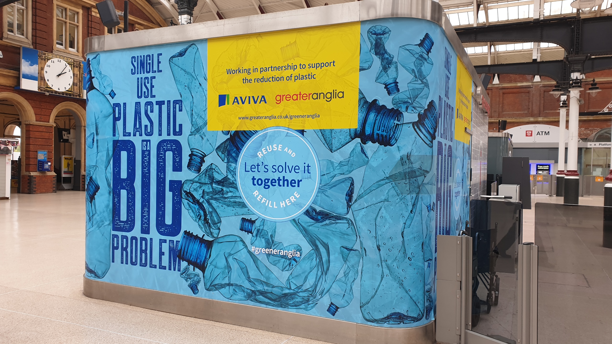 Heading back to the platforms, I notice the large display on the side of the information point advertising the station as a ‘refill point’ for water bottles, part of Greater Anglia’s ‘Greener Anglia’ scheme in partnership with Aviva. Despite platforms being displayed against departures up to an hour ahead at Norwich, access to the platform for inter-city services is restricted until the train is prepped for departure. In this case I was able to access the platform and train approximately 15 minutes before our departure time.