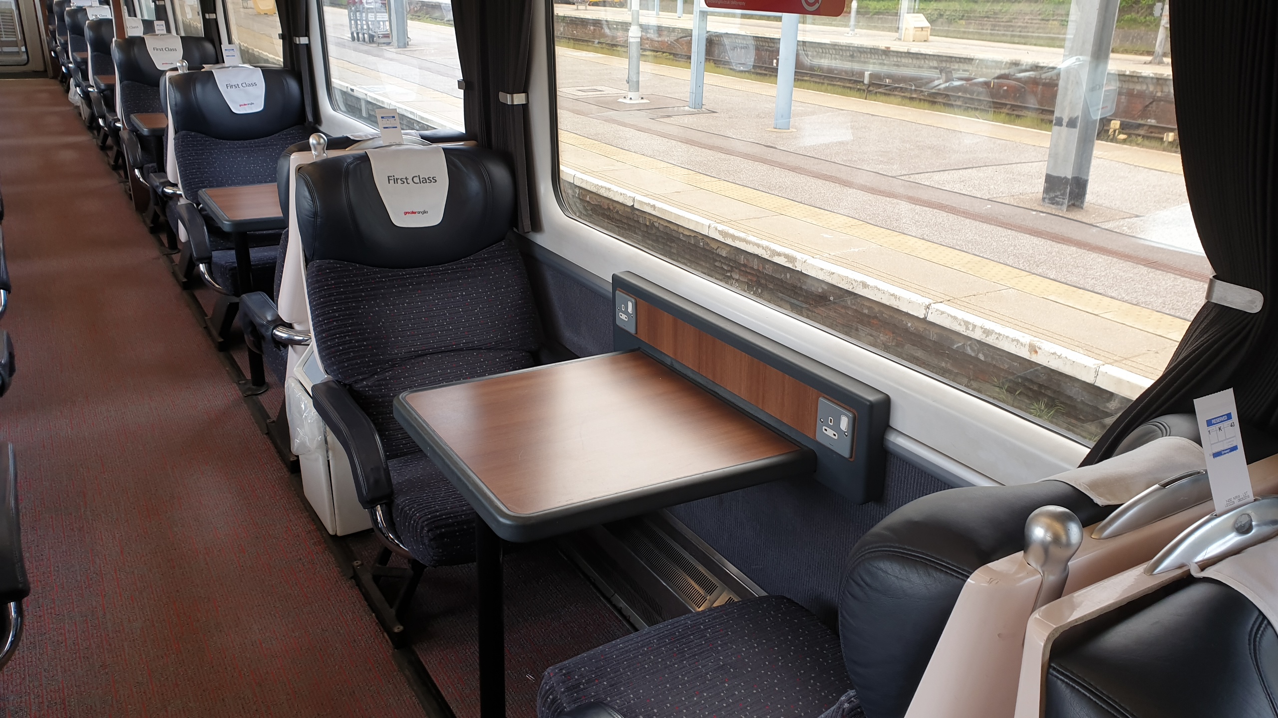 With first-class being at the London end of the train, I had a bit of a walk down the platform to coach K, however this did mean that upon arrival in London I was one of the closest to the exit and the Underground. The first-class coaches on Greater Anglia inter-city services are laid out in a 1+2 configuration, meaning seats are available which provide both a window view and aisle access. My seat (K37) was one of these and I had no-one sitting at the seat opposite all the way to London, allowing access to two power sockets and leaving me with plenty of leg room and table space. Whilst comfortable, I did find the seats to be fixed at a rather odd slightly reclined angle, with no ability to adjust the seat to an upright position.