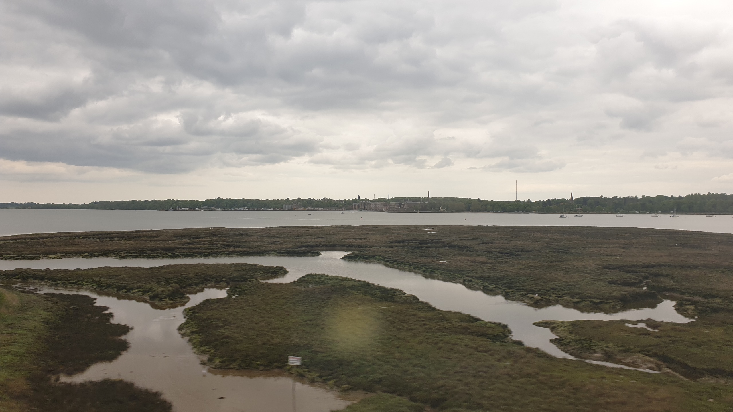 South of Ipswich we hit the line’s maximum speed of 100mph, completing the journey to Manningtree in just 9 minutes, less than half of what it would take by car. Crossing the River Stour and skirting the edge of the Stour estuary, we pass the junctions that lead the railway off towards Harwich. Despite the evolution of the railway through the years, there are still two daily ‘boat trains’ from London through to Harwich which are timetabled to connect with the ferry to Holland. Greater Anglia also has a partnership with the ferry operator, Stenna Line, and the Dutch national railway to enable the selling of through tickets from any Greater Anglia station to any city in Holland.