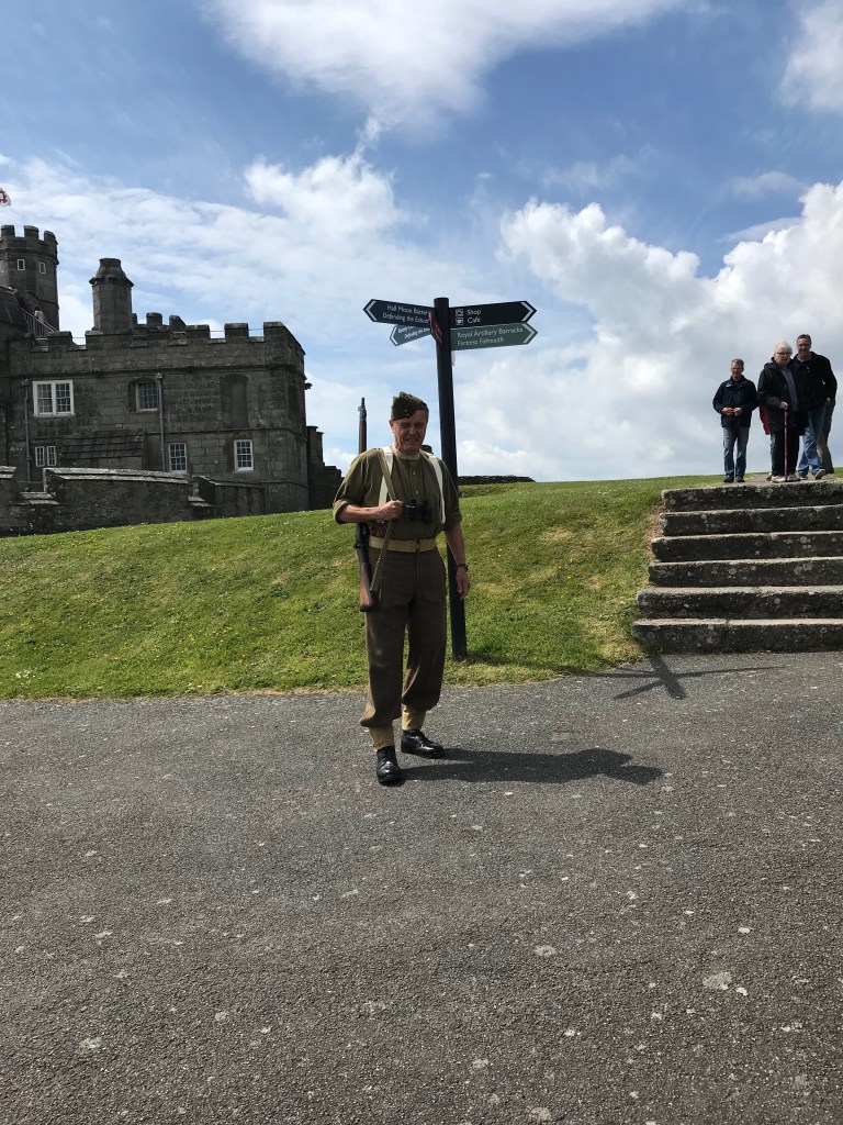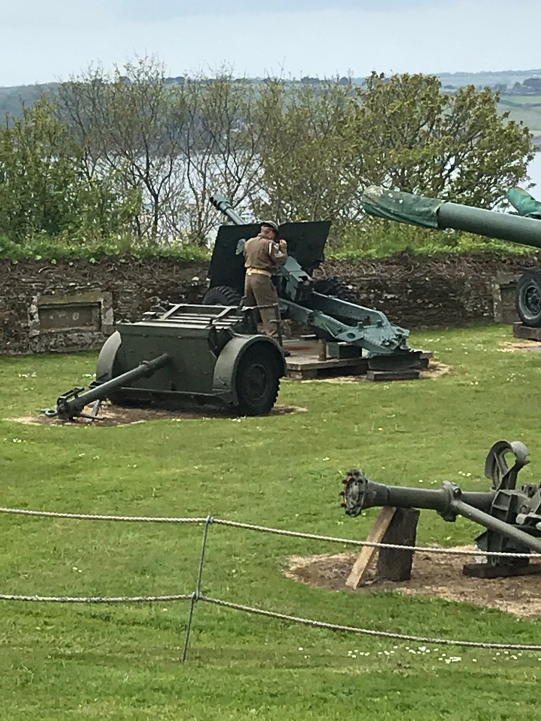Built into the side of the headland, below the castle walls, are the One Gun Battery (Steve told us this was inaccurately named, it’s only a battery if there are two or more guns) and down a tunnel is the larger Half Moon Battery. These have been in use, defending the mouth of the Fal since being built in the reign of Henry VIII when he built a series of artillery fortresses along the south coast, but they played an important role in WWII and that’s what Steve was there to tell us about. He told us all about the castle’s role at the time and how all the guns worked and the tour ended with us being taken into the old munitions store below the half moon battery. Steve was brilliantly engaging and we thoroughly enjoyed our tour.