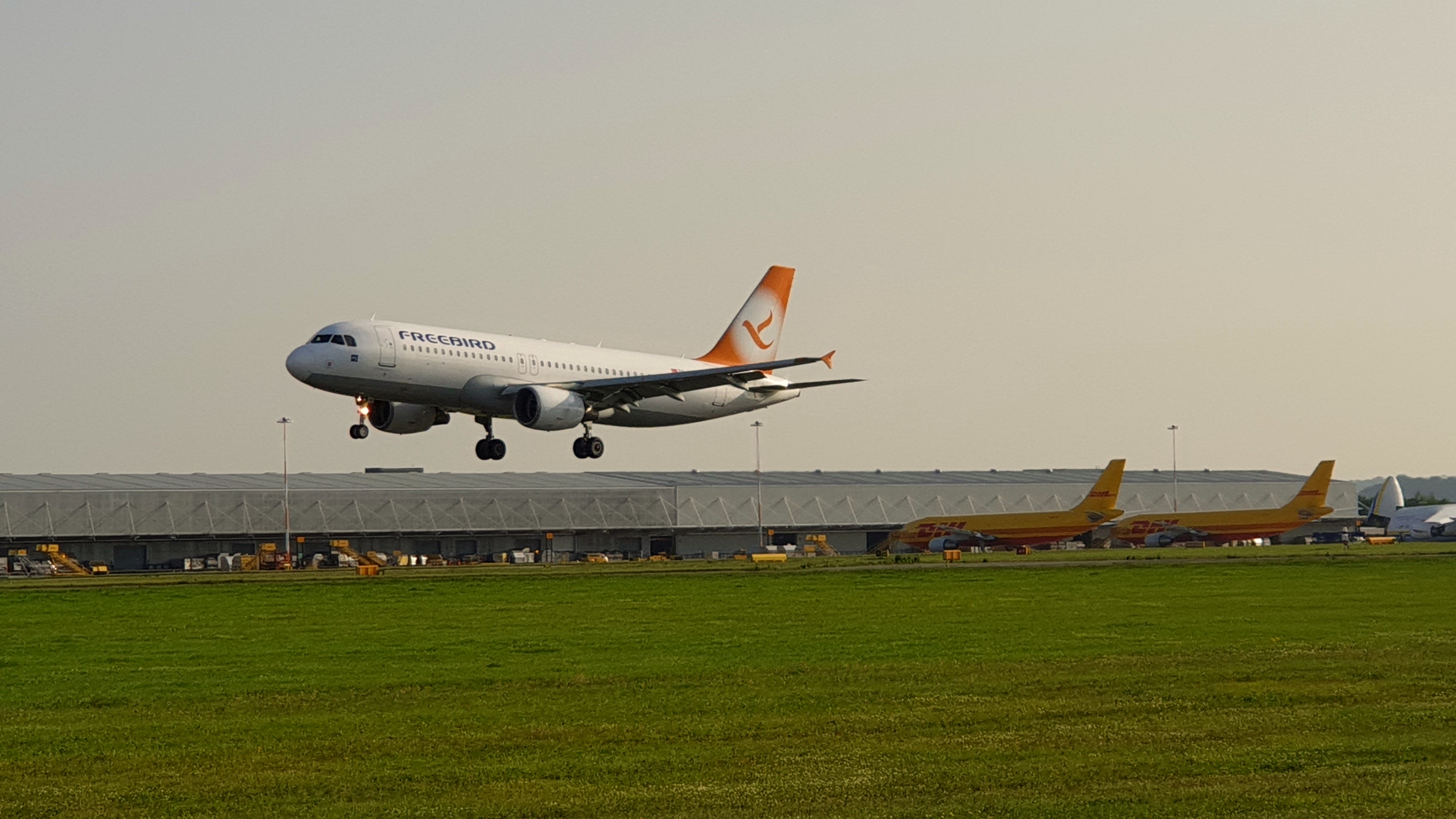 A Freebird Airlines A320 arrives from Dalaman