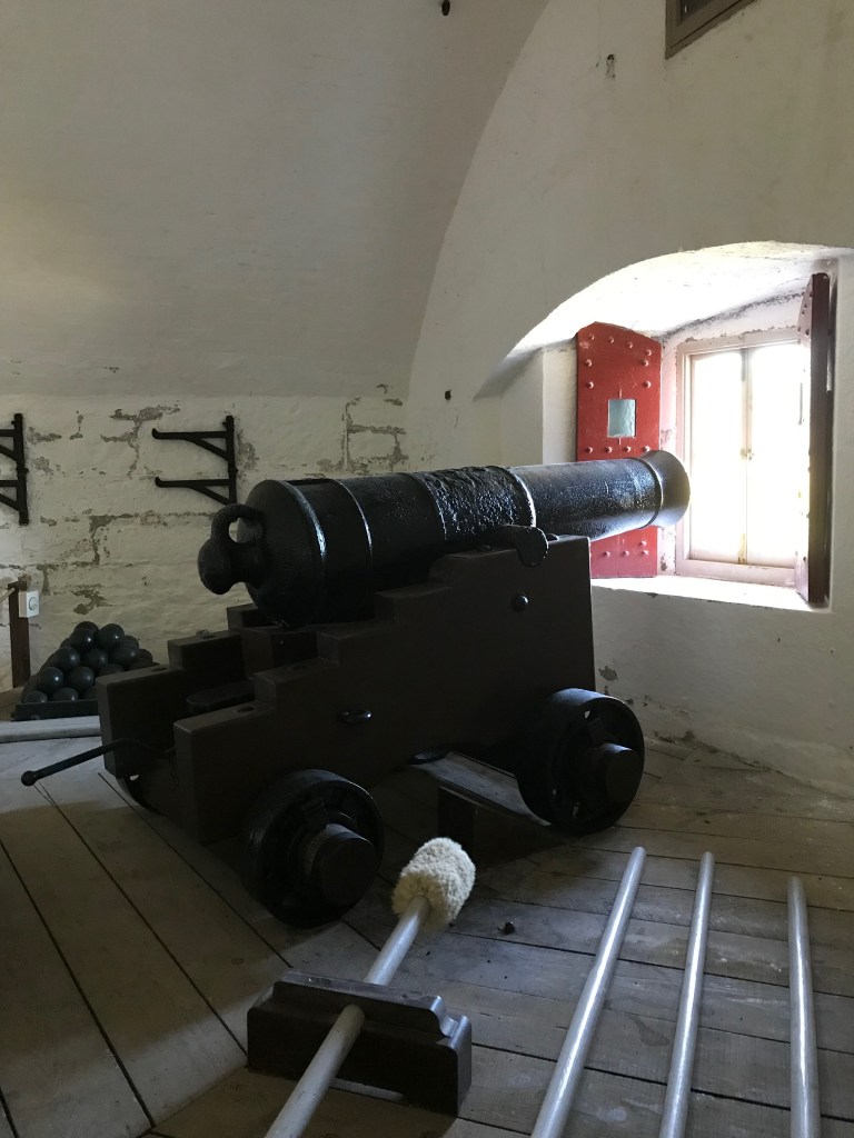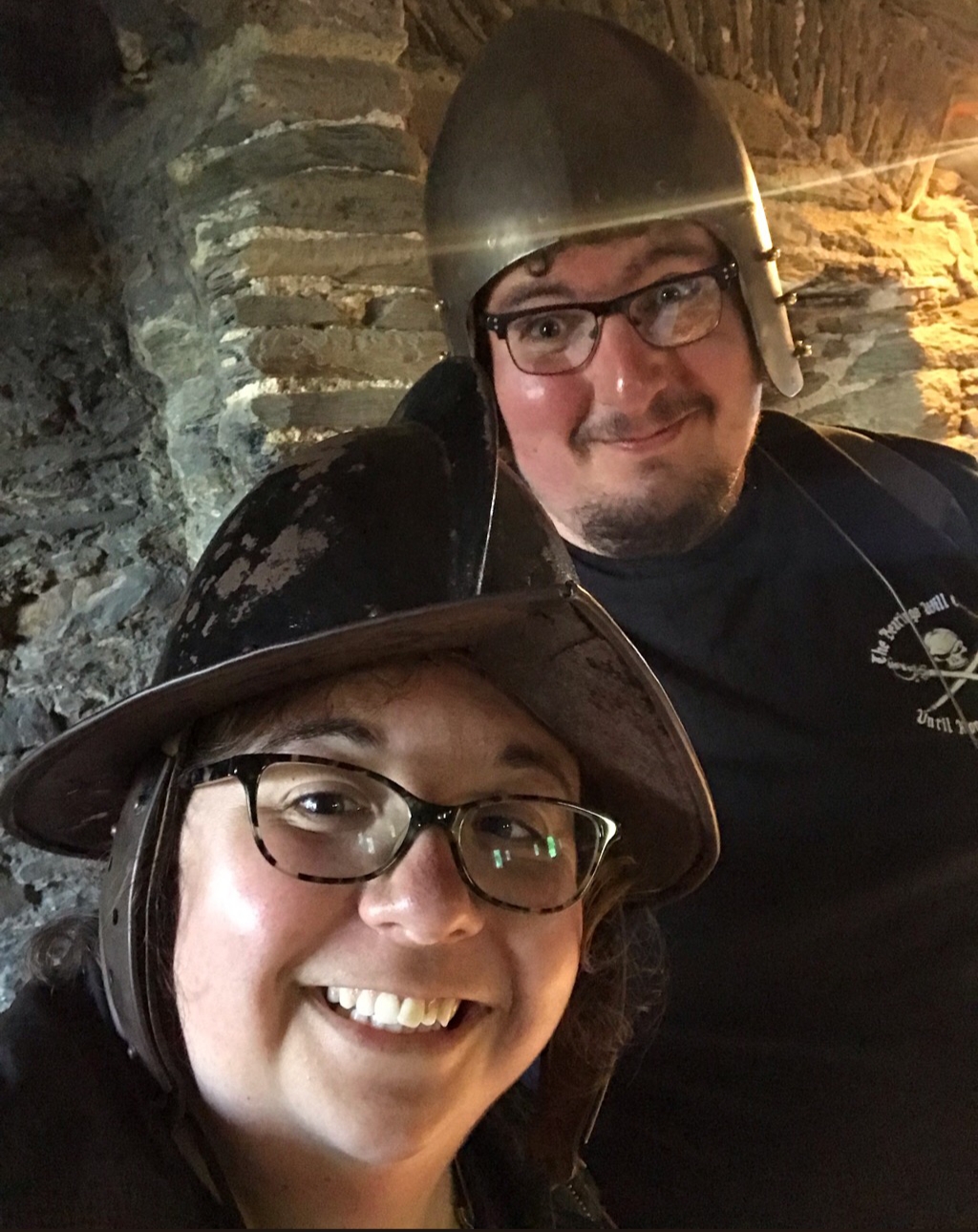 Again, the views are wonderful with a good vantage point to look both out to see and back upriver to the town of Dartmouth and the village of Kingswear on the opposite bank. There’s plenty of places for children to run around and get involved and even some helmets for kids and big kids alike to try on! As re-enactors ourselves, this photo shows we were pretty much on a busman’s holiday at this point!