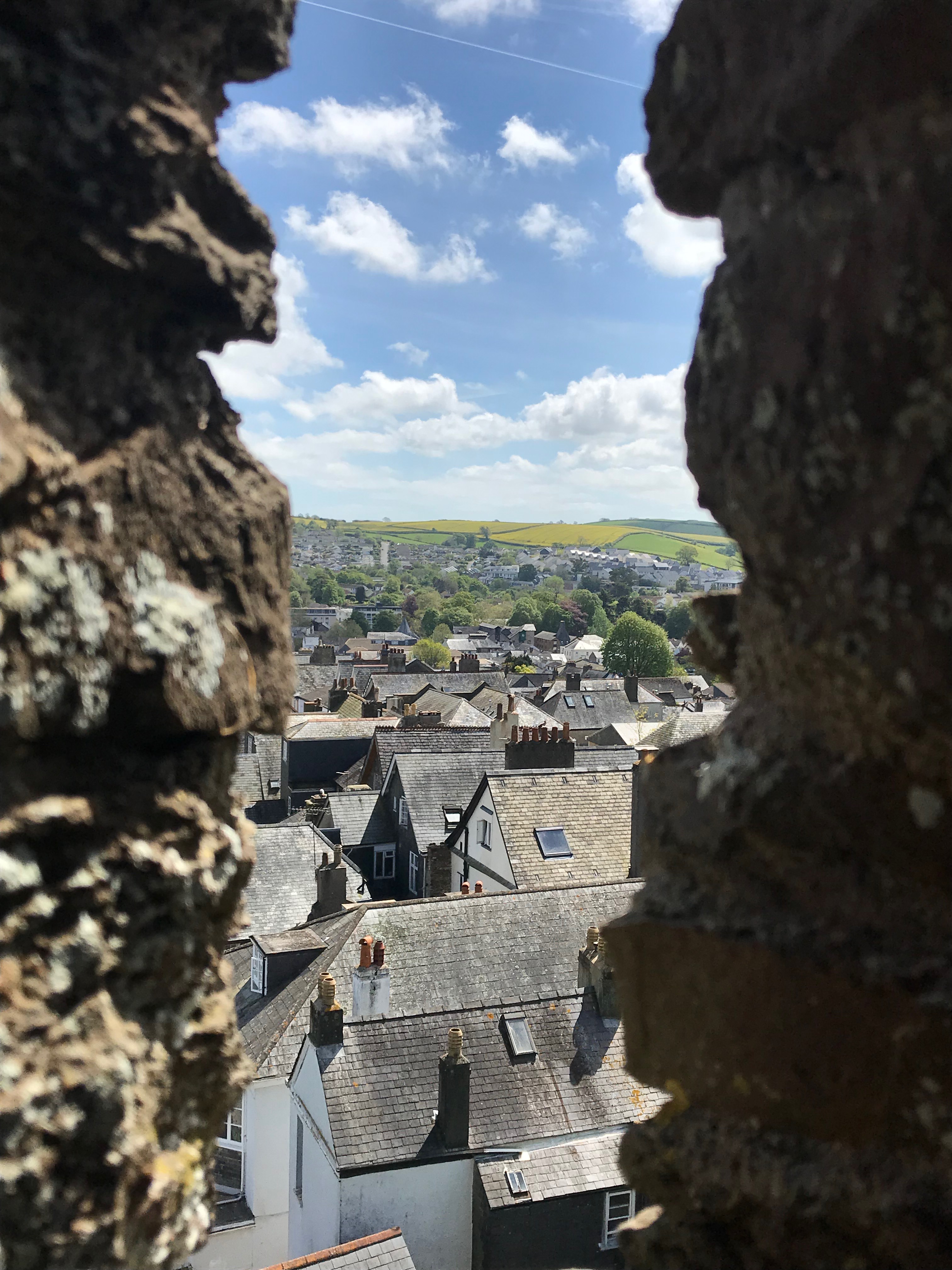 The steep high street runs almost from the motte of the castle down to the bridge and it’s clear to see why the location of the castle was chosen. Although the castle itself is mainly just a circular stone structure on the top of the motte, climb to the castle walls and you’re treated with commanding views over the Dart Valley. The views are the main highlight of the castle and although there are a few information panels around the bailey, the castle itself doesn’t take huge amounts of time to explore. It’s well worth it though for the views alone and we were lucky with a pretty clear day that was fairly sunny, although rather windy!