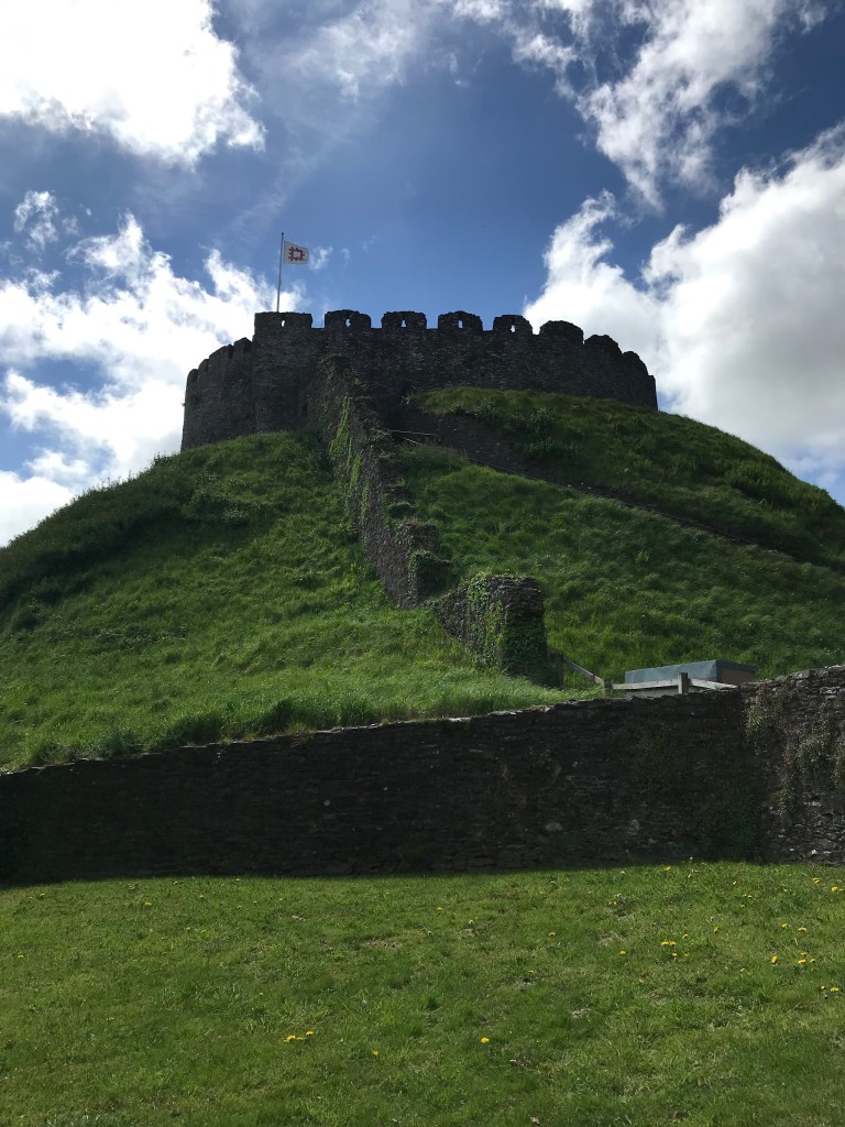 The first of the castles we visited was Totnes castle. Set on top of a hill at the far end of the high street, this round keep is a typical motte and bailey castle. Totnes was and still is one of the most important inland crossings of the river Dart. Even now, it’s often a bottleneck as people try and cross the river.