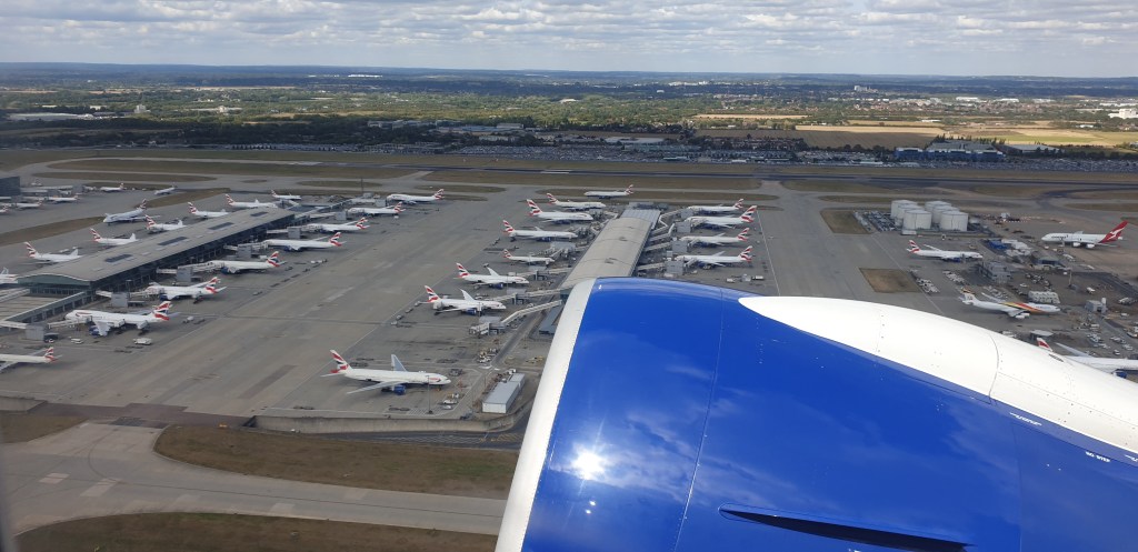 The primary reason for BA operating a wide-body on this flight is to facilitate the movement of larger amounts of cargo, and unfortunately this came back to bite us as an issue with the loading of this caused a delay to departure. We eventually pushed back at 1338, about 20 minutes late and after a taxi past terminals 2 and 3, lined up for departure on Heathrow’s runway 27L, taking off at 1355. Being seated on the right-hand side of the aircraft, I was able to see the aircraft queuing to depart after us and shortly after departure got a great view of Eton Dorney rowing lake through a gap in the clouds.