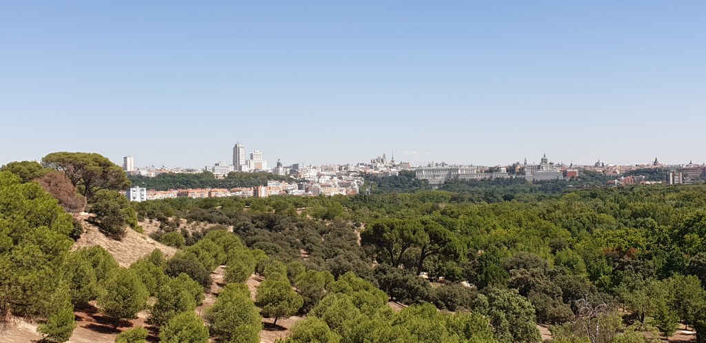 Four stops along from Colon on Line 4 of the Madrid, at the west end of the line is Argüelles station and a short walk led me to the north end of Parque del Oeste and Teléferico de Madrid, the Madrid cable car. The Teléferico connects Parque del Oeste with the large open space surrounding Casa de Campo on the other side of the river. A return journey cost 6 euros (or 5.50 with a bus tour discount booklet) and the journey one way takes about 10 minutes. The views throughout the journey, and from Casa de Campo, are absolutely amazing and there are benches and s play area so you can take a picnic and make the most of the journey. Unfortunately there isn’t a café or shop at the Casa de Campo end of the cable car, so if you are planning on staying there a while, make sure you take your own food and drink (there is a water fountain to refill bottles though!)