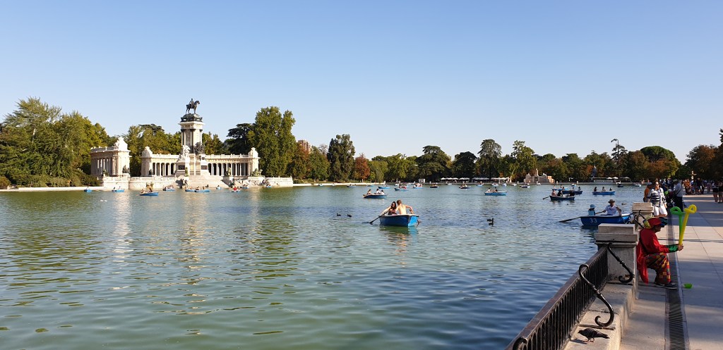 Leaving Mercado de San Miguel, I decided to head back to my room, via Bar Ideal in the nearby Plaza Mayor for a (very) late lunch. Having taken my bocadillo away the previous day, I decided to sit in and enjoy it with a beer, which in total came to only 5 euros, and was accompanied by a small plate of olives as tapas (as is traditional when you buy a beer – however only some places still do this). Heading back to my room, I decided to take a break and dump my rucksack before heading back out for the evening to Retiro Park and to enjoy the sunset.