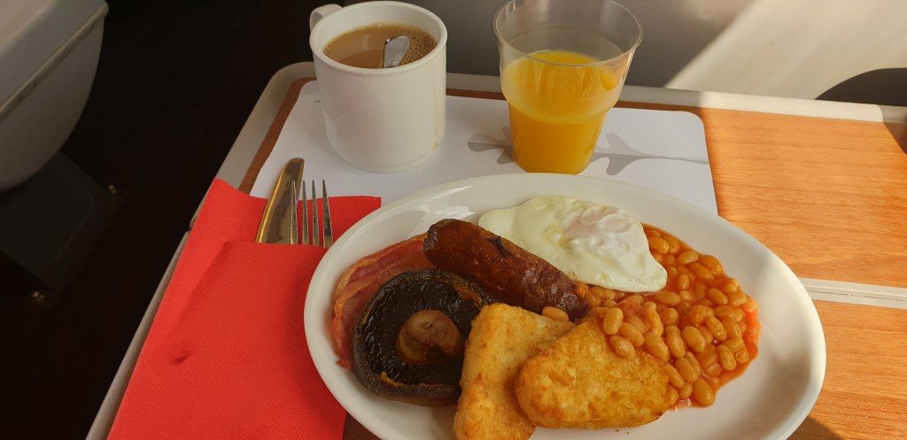 Almost immediately after departing Peterborough, a member of the on-board crew came through and took my order for breakfast, which of course was the ‘Full LNER’. Although LNER alternates it’s menu each week the breakfast choices are the same on both menus, with Avocado on Toast; a Bacon Roll; Porridge; and a Light Breakfast joining the Full LNER on the menu. All of the options come with the choice of Toast & Jam (or Marmalade) or a piece of Fresh Fruit.