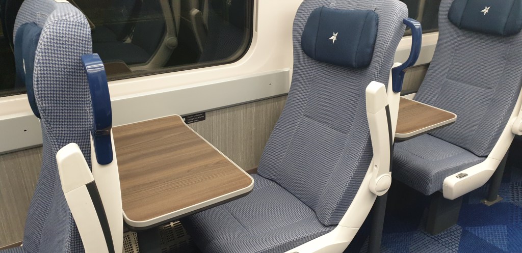 The seats in first-class were very comfortable with recline and retractable arms rests both sides, and each seat had both a USB and standard power socket. Unfortunately, whilst supposedly the on-board Wi-Fi also provides access to an entertainment system, I couldn’t get either my laptop or phone to connect. Whether this was an issue with the system or the new train I’m not sure, however the train was also operating without any reservations or destination information displayed.