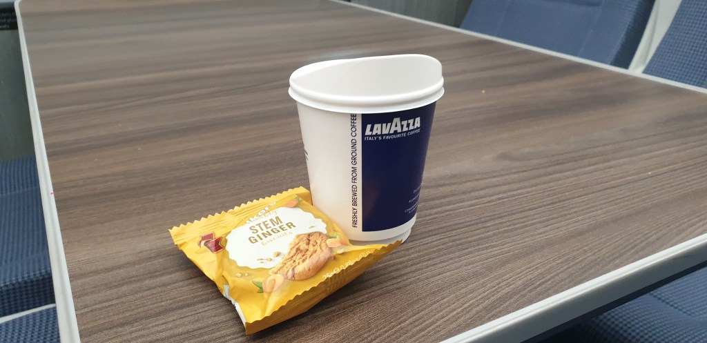 After calling at Manchester Victoria, there were only 3 other passengers in first-class and so the carriage had a very quiet and relaxed atmosphere. As I’ve mentioned before, sometimes the cost of an upgrade to first-class is worth it just for the space and quiet, even if it does only include a coffee and some biscuits, which it did on this journey.