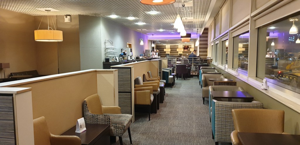 Along with the apron views, the Aspire lounge provides a buffet of hot and cold breakfast items along with a wide range of hot, cold and alcoholic drinks. Despite it being the peak period for departures from Birmingham, the lounge wasn’t overly busy, and I was able to get a table near the windows and settled down for some breakfast and to get some writing done.
