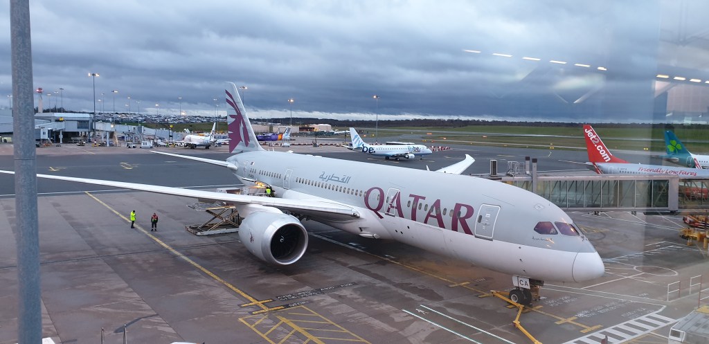 Pushing back at exactly 0800 we had a short taxi to Birmingham’s runway 33, however queuing being the depart Qatar Airways Boeing 787 Dreamliner and waiting for the inbound Lufthansa flight from Munich caused us to eventually take off at 0813. Take off was a little bit lively with the wind gusting at 31knots (about 25mph), however we were soon heading north-west towards Liverpool and crossed the English coast over The Wirral about 15-minutes later.