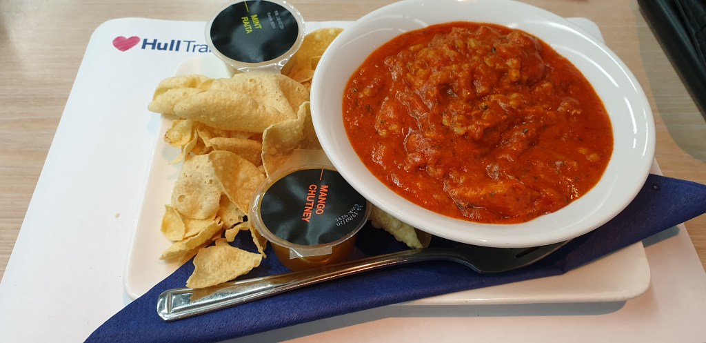 As well as meaning a quiet journey south, the empty carriage meant an extremely quick service from the friendly crew. Our food options for the journey were sandwiches or a hot choice of Chicken Tikka curry or Macaroni Cheese. With us opting for the two hot choices, we settled in for the journey and were soon served with our drinks. Hull Trains provide hot drinks and a selection of cold drinks for free in first-class, however alcoholic beverages have to be purchased for and additional charge.