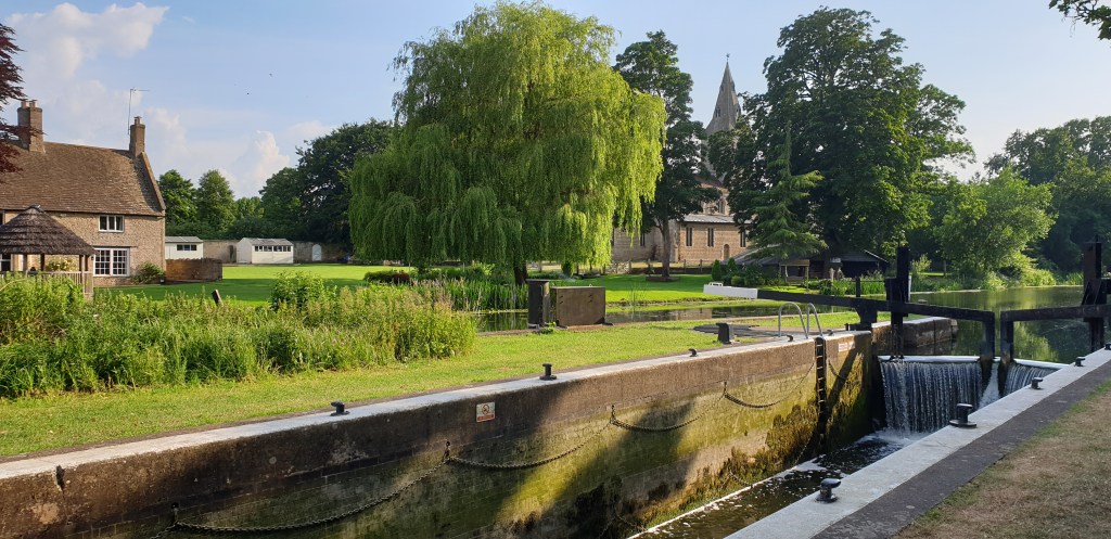 After crossing the bridge, you can either head to the left around the end of the island or cut straight across it to the navigable branch of the Nene and the village of Water Newton. When we first crossed the little bridge to the riverside at Water Newton, we were absolutely stunned. This tiny village is beautiful and the area by the river and lock is so peaceful and seems to be the perfect image of quintessential English countryside.
