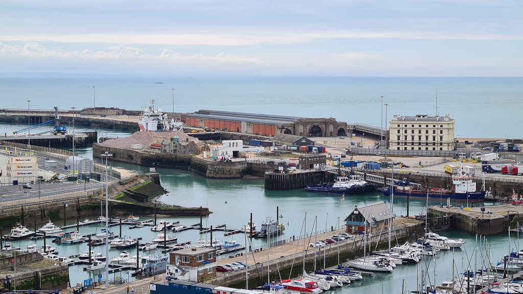 After an extended stop at Ashford to allow for the train to divide (only the front 6 carriages continue to Dover), we re-join the conventional railway on our way to the coast. Continuing parallel to HS1, we pass through a number of smaller stations on the South Eastern Mainline before calling at two of the three stations serving the town of Folkestone. Although there are no longer any ferry services from the port at Folkestone, the town plays a key part in cross-channel travel with the northern terminus of the Eurotunnel Shuttle being located in the suburbs. In 2017 10.4 million passengers and 21.3 million tonnes of freight used the shuttle, whilst 11.7 million passengers and 34.6 millions tonnes of freight used the nearby Port of Dover.