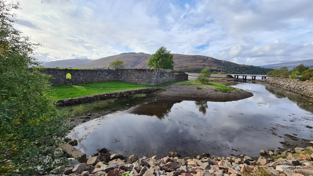 After our late lunch we decided to head out and see some of Fort William’s local sights, recommended to us by Colleen from the museum. The first of these was right next to the railway station and was the old fort of Fort William. Originally constructed in wood in 1654 before being replaced by stone and expanded, the fort gained notoriety for its role in the 1692 Glencoe massacre. Sold by the War Office in 1864, the fort was initially converted into private residences before gradually being demolished over the early 20th century due to the arrival of the railway. All but the remaining seaward wall was demolished in 1975 to allow for the realignment of roads and the railway, leaving what remains today.