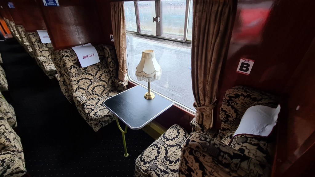 We had actually booked seats in one of the compartments further back in the train, however had received an email as we had headed north a couple of days previously, upgrading us to the first-class carriage due to Covid-19 and Social Distancing. We assume this was due to there only being two of us, whereas the compartments would likely hold 6, and so West Coast Railways (the operator) wanted to use these for larger groups. Either way, we weren’t complaining!