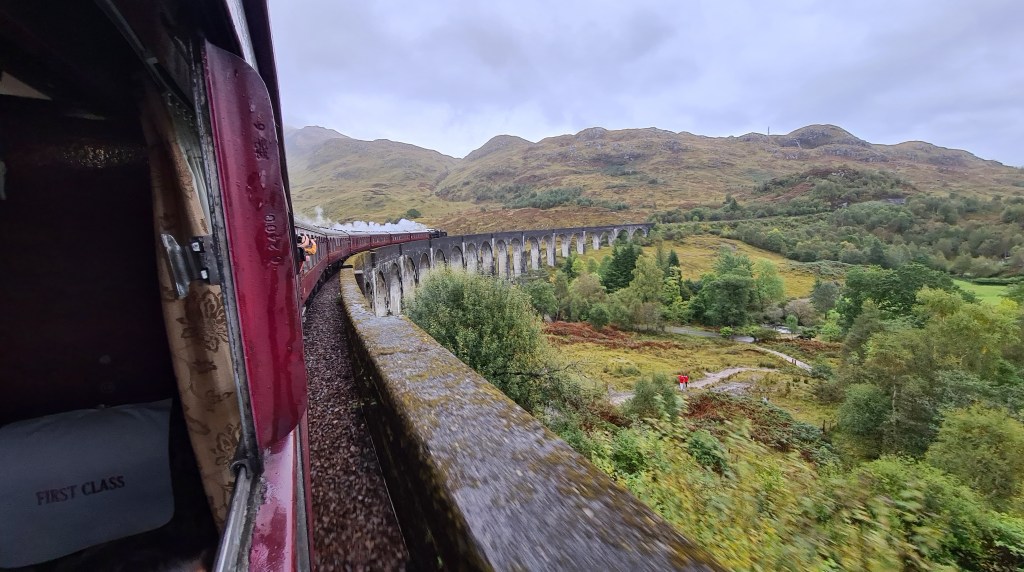Even more amazing than the view of the train passing over the viaduct from afar is the view of the train passing over the viaduct from one of the carriages it is hauling, and on Wednesday 30th September, that is exactly what we got to do. Arriving at Fort William nice and early, we were the first to board our carriage and settled into our armchair seats as the train prepared for departure.