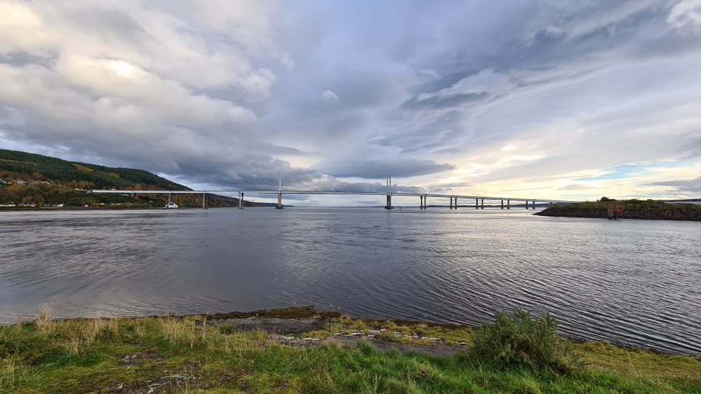 The walk then takes you through the South Kessock neighbourhood, this section of which has an odd mix of maritime industry and housing and eventually a rather inconspicuous entrance to the small park area where Carnac Point sits. From the point there are beautiful views out over the firth, with the Kessock Bridge in the foreground marking the boundary between the Beauly and Moray firths.