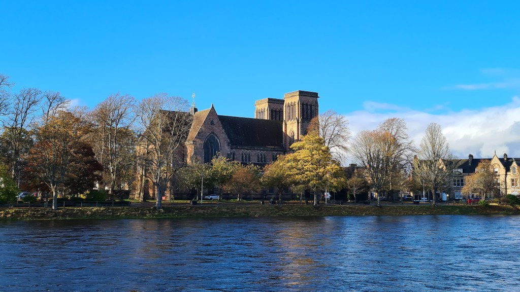 After a filling lunch, I decided a wander to walk off the calories was in order and so I set off upstream along the River Ness, initially to the striking building that is St. Andrew’s Cathedral. Whilst the design of the building itself is probably better described as imposing than beautiful, the red Tarradle stone add a warmth and makes it feel more welcoming. St. Andrews’ is Britain’s most northerly cathedral and when it was constructed in the late 1860s it was the first new Protestant cathedral since the reformation.