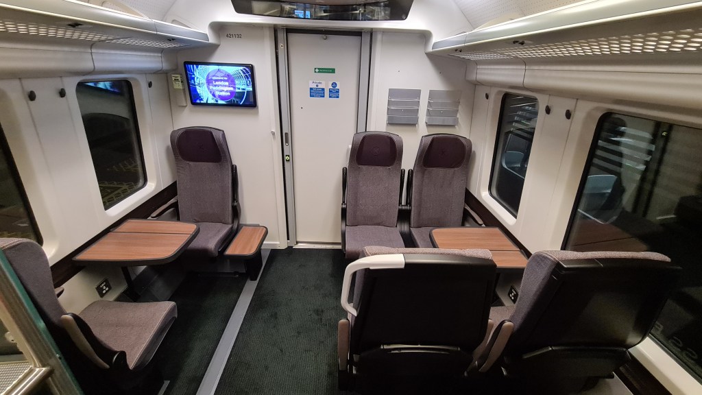 On-board there are two classes of travel, Standard and Business First, the latter of which is essentially first-class. Standard is laid out in the usual 2-2 configuration, with a mix of ‘airline style’ seats and groups of four set around tables. Business First is laid out in a 1-2 configuration with reclining seats and a bit more space, however given the short length of the journey there is no onboard service.
