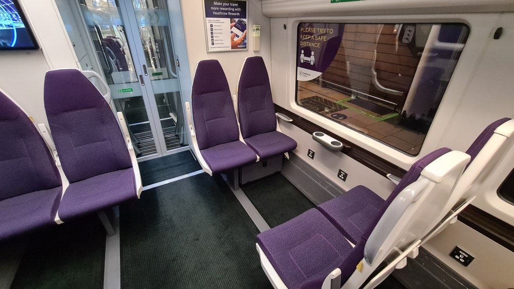 Twelve 387 units were refurbished, which included the installation of USB power sockets, extra luggage space, on-board Wi-Fi and TVs. Unfortunately, the latter can’t be used individually and play a mix of BBC News segments and Heathrow Express infomercials, with a constant stream of sound for the entire journey to the airport.