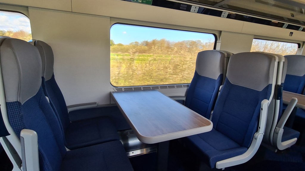 Onboard the new carriages, the seats are reasonably comfortable and are the same across the Nova fleets. They have unfortunately gone the way of most modern trains with streamline seats, although these ones are definitely more comfortable than some. It would be interesting to see how comfortable they are on a journey from Liverpool to Newcastle or Manchester to Edinburgh. In standard they are in the usual mix of ‘airline style’ and bays of four with tables, and each pair of seats has access to both a standard and USB style socket. TPE have also invested in onboard entertainment of sorts, with a selection of movies and TV programmes available to watch on your own device via their wi-fi platform.