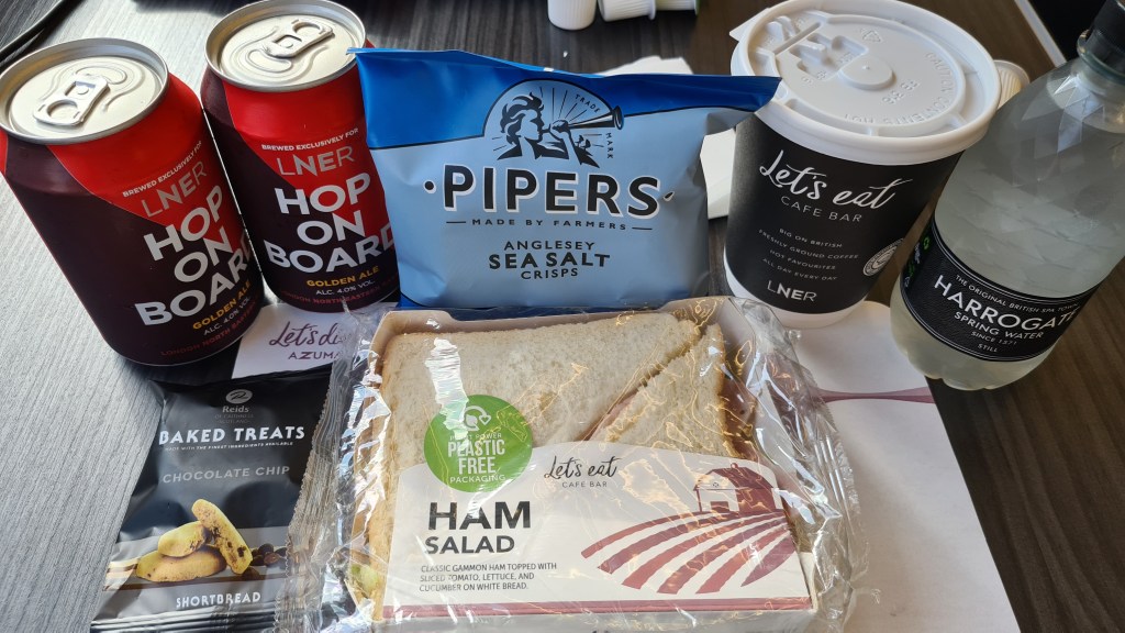 This was my first journey with LNER in a while where I had experienced the catering and two things stood out to me. Firstly, the options have been rotated, meaning I enjoyed a nice Ham Salad sandwich as opposed to my usual Chicken Mayonnaise sandwich, which whilst delicious was getting a bit boring. Secondly, alcohol is back on board with LNER having ended its ‘dry train’ policy of the pandemic, allowing me to enjoy one of their ‘Hop on Board’ ales during the journey.