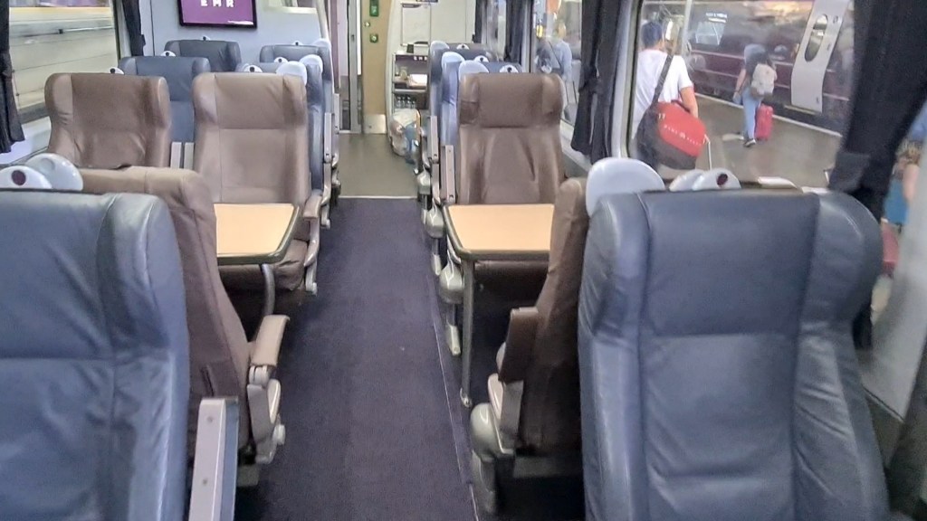 Whilst the weather outside wasn’t particularly hot, it was reasonably warm and so I was very confused by the floor level vents pumping out hot air to heat the carriages, whilst the air-con attempted to cool it at the same time. Unfortunately, of the two air-con units in coach B, the one nearest me couldn’t cope with the struggle against the heating and so other than making lots of noise was essentially doing nothing for the entire journey south.