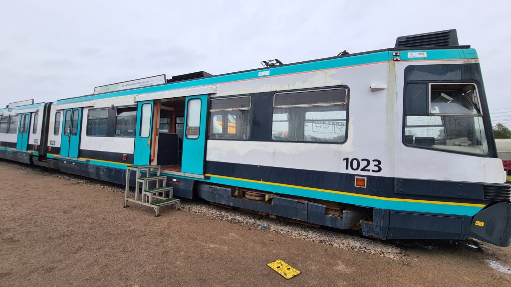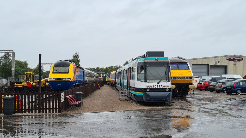 Heading back towards the centre of the site, the section area alongside the Chester line retains numerous sections of railway, including a connection to the mainline and so is home to the vast majority of the Heritage Centre’s collection of locomotive, carriages and units. Whilst most of these exhibits would be classed as ‘Heavy Rail’ there is one temporary resident from a nearby tramway. Manchester Metrolink Tram 1023, a AnsaldoBreda T-68 was one of the original vehicles operating on Metrolink and was replaced in 2014 by newer Bombardier Trams. Eventually 1023 will find a new home at the Heaton Park Tramway, however it is temporarily at Crewe until Heaton has space for it.