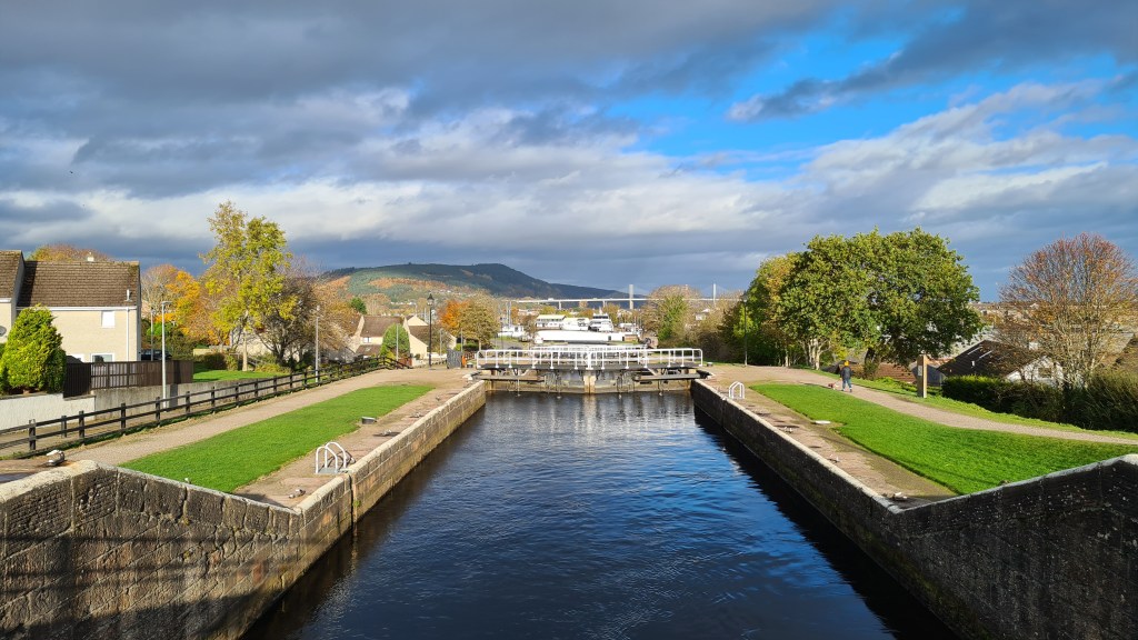 The far end of the path through the nature reserve leads directly onto what was our next destination, the Caledonian Canal. If you read my Fort William blog (here) last year then you might recognise the name as somewhere we’ve visited before. Close to Fort William is the south-western end of the Canal at Neptune’s Staircase and some 100km to the north-east is the other end on the outskirts of Inverness.