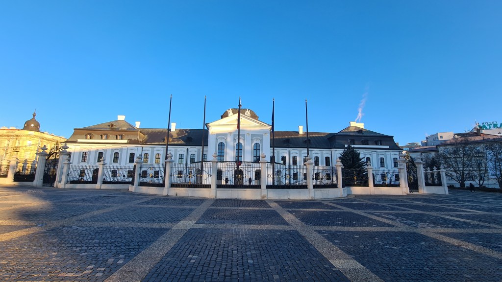 My first stop, the Grassalkovich Palace, home to the Slovakian President, was just over the road from my accommodation and with clear skies looked absolutely stunning. Built in 1760 for a Hungarian aristocrat, it first became home to the president during the first Slovak republic before then being used as the seat of the Council of Commissioners for a few years at the start of the communist era.