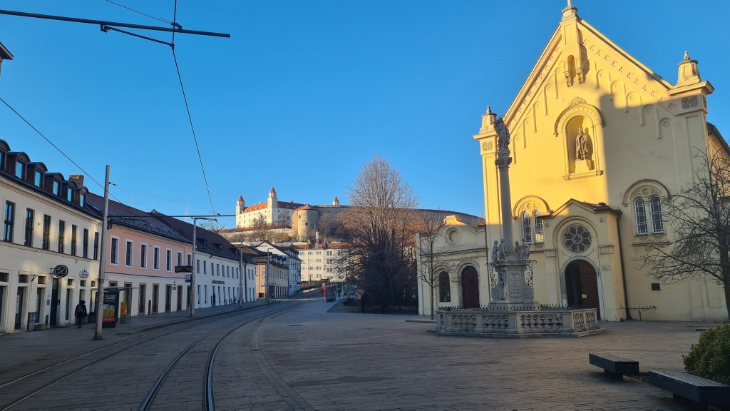 My accommodation for the two nights I was in the Slovakian capital was a top floor apartment across the road from the Presidential Palace and next door to the Kazak embassy. About a fifteen-minute walk from Hlavna station it was a great base for my stay and I even got a view of Slavín, a monument and military cemetery for Soviet soldiers who fell whilst liberating the city during World War II.