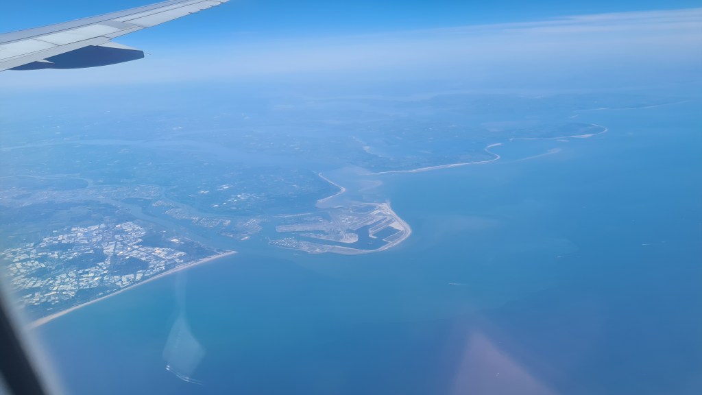 Finally, almost 90 minutes after our scheduled departure time, we were airborne at 0937 and soon making a left turn to take us out over East Anglia. With clear but hazy skies, I was able to see the Lea Valley reservoirs, Isle of Dogs and O2 arena from the right-hand side of the aircraft. With the usual views of large-scale wind farms and trans-continental shipping, our time over the North Sea was short and we crossed the Dutch coast over the Port of Rotterdam.