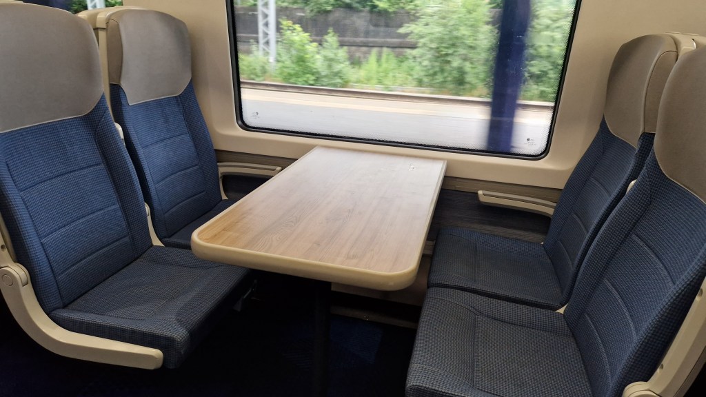 Whilst TPE have begun to mix the routes that their different fleets serve, the routes north along the WCML have generally been served by class 397s in the last few years with my journey north being operated by 397012. The class 397, or ‘Nova 2’ (you can read about my journeys on the ‘Nova 1’ and ‘Nova 3’ here & here) was built by Spanish manufacturer CAF and is part of their Civity family of trains, similar to Northern’s class 195s/331s and the class 196s and 197s being introduced to West Midlands Trains and Transport for Wales respectively. TPE’s class 397s have five carriages with 4 standard class and 1 first class, allowing passengers to opt for a bit more comfort if covering the full 3-and-a-half-hour journey to the Scottish capital.