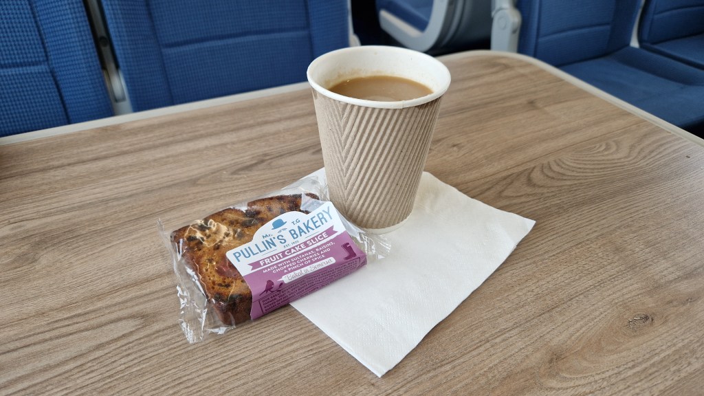 Throughout the train there is free Wi-Fi and a mix of ‘airline style’ and table seating, with all first-class seats having a table, along both standard and USB sockets accessible at every seat. The journey from Oxford Road to Preston on TPE is about 30 minutes with no stops, however despite the short trip there is a trolley service due to the longer distance the train itself is travelling. A coffee and a slice of cake cost me £3.50, a very reasonable price when compared to the coffee shops at stations and it gave me a bit more energy for the early evening trip.