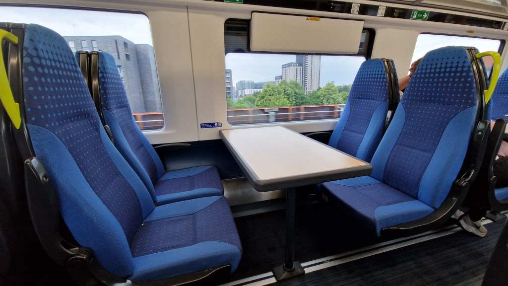 With just five minutes to change at Preston, I thankfully arrived at the platform just before the Northern class 331 arrived from Blackpool North. These class 331s have either three or four carriages with all standard class seating. As mentioned earlier, these are also built by CAF and so have a lot of similarities with the TPE class 397s, including the layout of the seating and actual seat design. You can read about Northern’s class 331s in more detail here.
