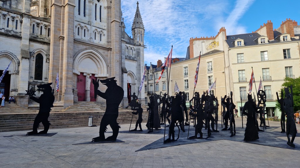 Continuing on my self-guided tour of the city, I headed over to the 19th century Basilique Saint-Nicolas de Nantes and found that outside was a collection of metal figurines showing part of the city’s history. This appeared to be one of the various pieces of public art that Le Voyage á Nantes has put on display around the city and whilst I didn’t go looking for others, I did see one or two dotted around.