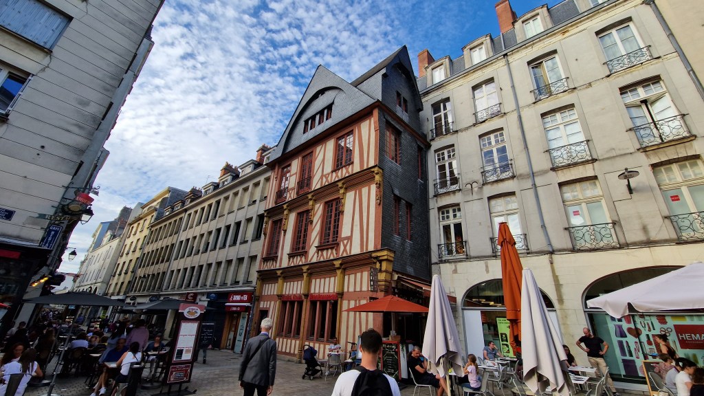 Next to the Église Sainte-Croix is the Rue Sainte-Croix, one of many narrow winding streets that fill this part of Nantes. As I followed it and the Rue de l’Emery towards Nantes’ Château I had to work my way around diners from the many restaurants that have spilled out into the streets, making the already narrow space even tighter. At points the space to pass through led walking in single file, however it was great to see the city alive and both locals and tourists enjoying the evening.