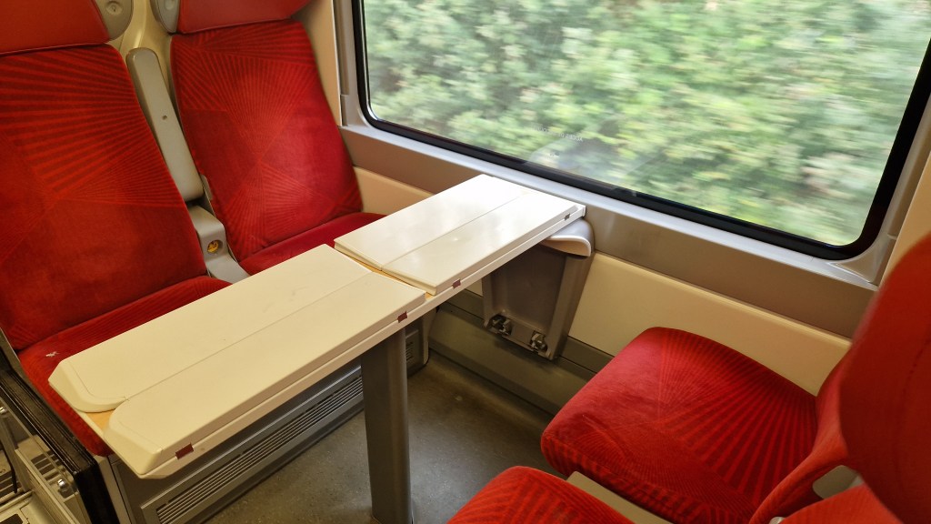 Providing both 1st and 2nd class seating, these units have a mix of airline style and table seating in 2nd class, with each seat having its own reading light and a standard European socket being shared between each pair. Table seats had folding tables, allowing easier access to the seats, whilst also providing a solid surface to work on if desired.