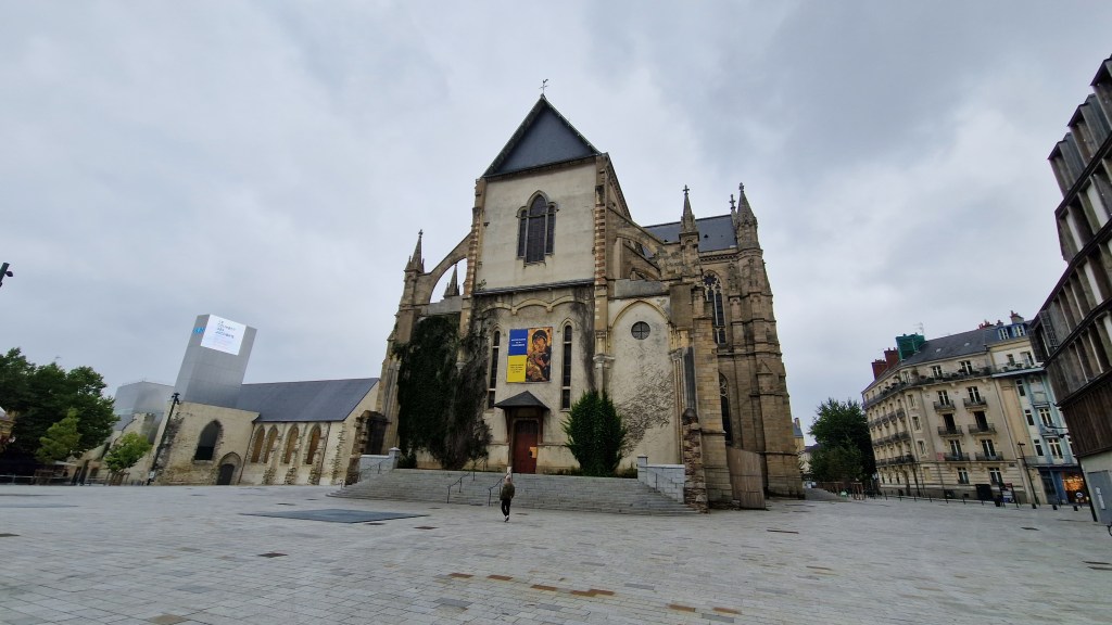 With a lot of Rennes’ attractions being closed owing to the French Bank Holiday, we decided to make one last ditch attempt to find a coffee and croissant and headed to the railway station. Personally this diversion was a double success, with coffee being found and us also getting the chance to see the extremely impressive Gare de Rennes. Whilst a station has existed on the site since 1857, the current building is a very modern creation, having only opened in 2019. It is also home to a sculpture representing the mythological horse Morvarc’h which, a week after its installation, was vandalised by the addition of a tag indicating “This is ugly”. Enough said.