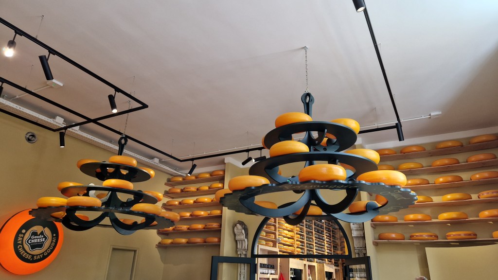 The main reason I had decided to jump off the train at Gouda was to pick up some cheese to take home with me and so I headed to the Gouda Cheese Experience, the town’s premier tourist destination for cheese lovers! A tour round the ‘experience’ costs €16 for adults and takes between 60-90 minutes and allows you to learn all about Gouda cheese and the process of making it. There’s also a café that serves excellent cake (although was ironically out of cheesecake) and a gift shop selling various souvenirs along with the all-important cheese.
