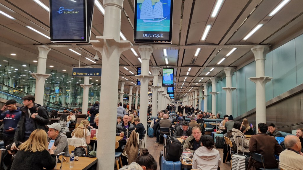 With the ongoing rail strikes, the first few Eurostar services of the day had been retimed to depart after the railway ‘re-opened’ at 0700 and so I had deliberately not arrive at St Pancras too early to avoid the four trains worth of passengers waiting in the departure lounge. As it was, check-in for my 0901 departure wasn’t quite open when I arrived and so I had a short wait in the main concourse at St Pancras before the journey could begin.