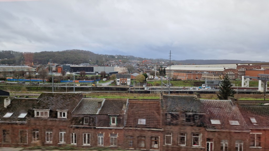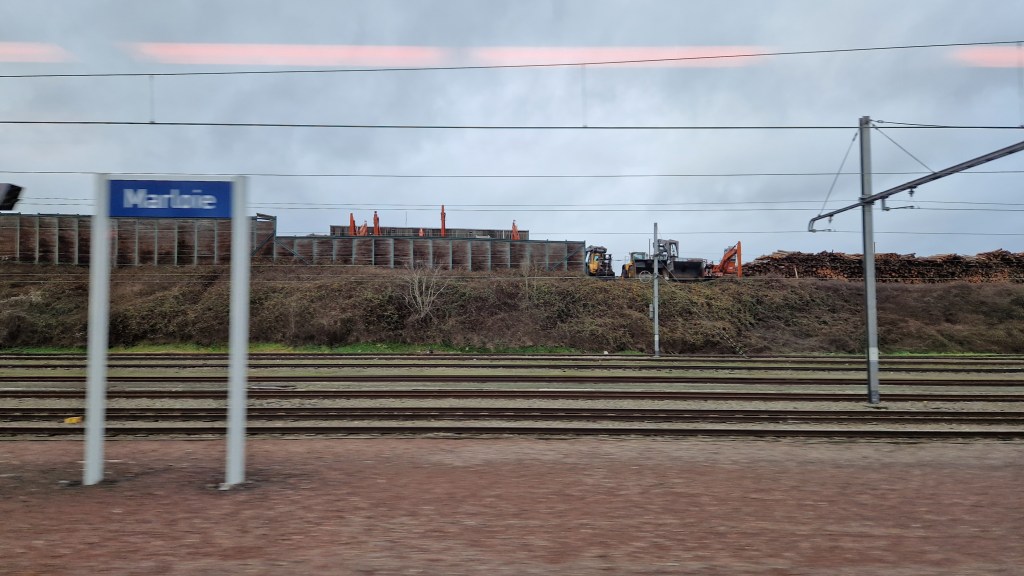 The journey across south-eastern Belgium certainly provided an excellent range of countryside out of the window, with a mix of farmland, forests and rolling hills. Just as I’d get used to one type of scenery the view out of the window would change and we’d be passing through another. For the railway geek in me, there was also a range of railway yards and sidings to keep me occupied, including at Marloie where the railway seemed to serve a large lumber yard with stacks of logs rising high above the railway.