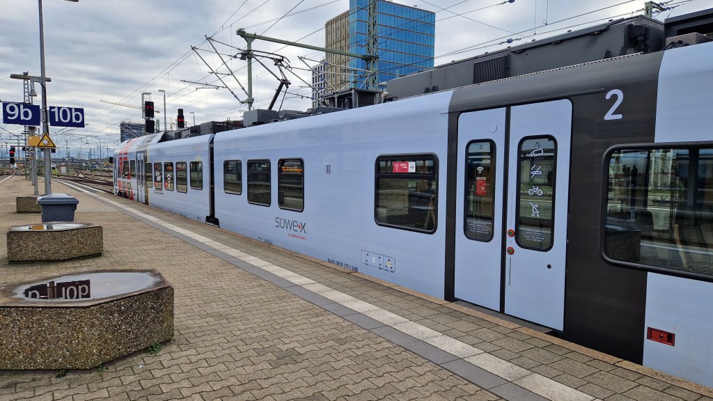 Having had my breakfast, I made my way to the platform a few minutes before the RE1 service arrived from Koblenz. The RE1 or ‘Südwest-Express’ runs hourly from Koblenz to Saarbrücken with a two-hourly extension to Mannheim and is generally operated with class 429 units. These class 429s are Stadler FLIRT 3 units, the same family of train as the Great Anglia class 745s (read about those here) and are really good trains including, most importantly, low floors for level boarding.