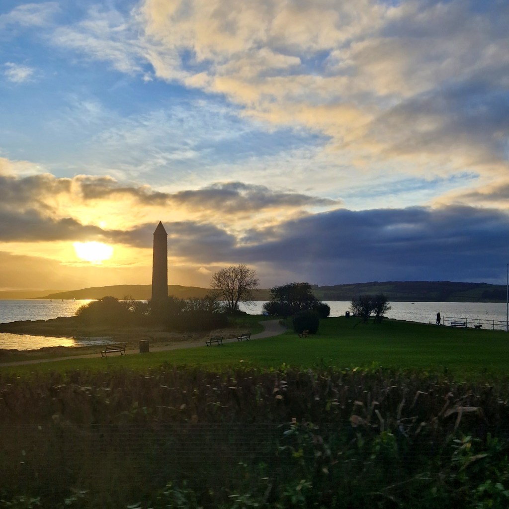 From Kilwinning I had a few minutes to pass through the ticket office which sits in the centre of the triangular island platform to the Largs/Ardrossan bound platform. From here it was just a 30-minute run to Largs, via Ardrossan South Beach, the junction station for the Ardrossan branch. As we approached Largs I got to enjoy a sunset view out over the Firth of Clyde of the Largs Pencil Monument, erected to commemorate the 11th century Battle of Largs.