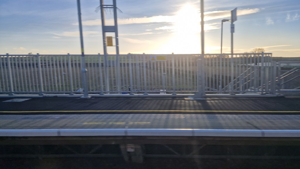 Shortly after Drem and the junction for the branch to North Berwick, we passed through the almost completed but not yet open new station at East Linton. East Linton is in a similar situation to Reston, where the original 19th century station was closed in the 1960s and a new station is now being constructed to serve the growing community. East Linton station is currently scheduled to open in Spring 2024, but looking at it as we passed through, it might well be before this.